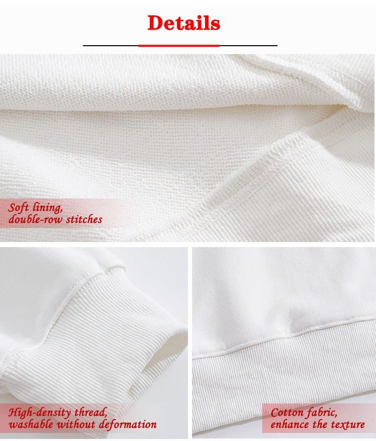 The oversized streetwear hoodies are made of 50% cotton and 50% polyester, which have plenty colors in stock. The exquisite patterns add a sense of fashion to the cotton hoodies. We also provide a variety of crafts and can design the hoodies according to your preferences.